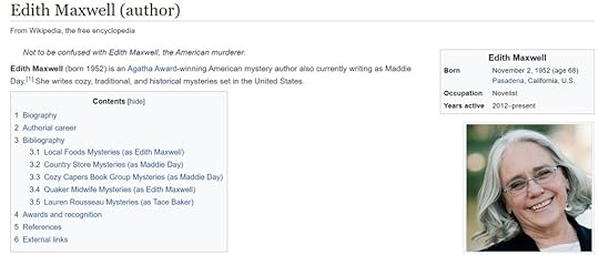 When I first started being published over a decade ago, a very different Edith Maxwell was the first result returned in any Google search. This Edith wasn’t an author – although she has books written about her. No, she was a young schoolteacher in Virginia who in 1935 was convicted at age 21 of murdering her apparently abusive father.