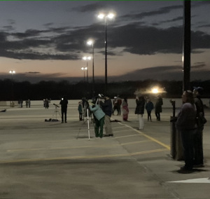 Last night Jupiter and Saturn were closer together than they have been in the past four hundred years. I’d been looking forward to this event since I first heard about it a month ago. We drove to the VRE (Virginia Rail Express) parking lot and stood on the top deck to get our first glimpse. We weren’t the only ones there. You can see it with the naked eye, but binoculars helped. When we got home we realized that despite the trees we could see it here too. If you missed it yesterday, you can try again for the next couple of days.