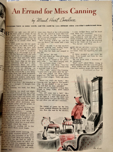 [image error]For some reason about a week ago I went on eBay and typed in Maud Hart Lovelace. There were lots of listings to scroll through — mostly Betsy-Tacy books — lots of them newer paperback versions of the books. Then I spotted a posting for a Woman’s Day magazine with a short story written about Betsy in 1944! The magazine was found in an attic in Maine and claimed to be in good condition. Two seconds later I hit the buy button.