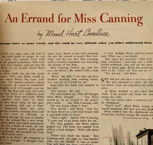 The story is titled “An Errand for Miss Canning.” In the story Betsy is eight and in third grade. Her teacher asks Betsy to run an errand for her — to her house! (Can you imagine that these days?!) Miss Canning wants Betsy to retrieve a notebook from a secretary in her parlor. Betsy says yes, but is too embarrassed to ask what is a secretary. I shared every distress Betsy felt as she walks to and enters Miss Canning’s house. It’s a trademark of Lovelace’s writing to put the reader in the middle of the story.