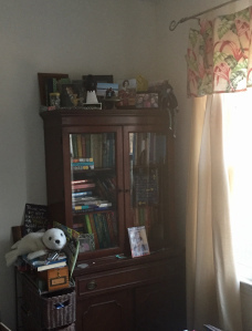 Also to the left are some favorite pictures and a bookcase I bought at a thrift shop for thirty dollars. The white stuffed seal is the “official” seal of Sisters in Crime. It’s passed from president to president.