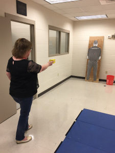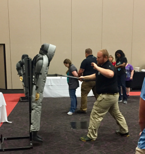 They have so many classes to choose from. The one on interrogation techniques was fascinating and so different from what you see on TV. After I took a class on using a baton and yes we got to use one (whew, I didn’t injure anyone)! Even after they saw me use the baton they let me use a TASER in the next class. They aren’t as effective as you think for as long as you think! How would you like the spike below stuck in you?