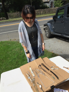 Liz took me to a tag sale (garage sale). Liz headed straight for the jewelry. And we had lunch with Shari Randall.