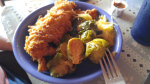 We ate out every night, but one of the best classically southern meals was lunch the first day. Fried catfish and Brussels sprouts, anyone, or fried chicken on a biscuit with sausage gravy and cheesy grits? Yum. (And now I’m home? A serious diet is on the menu.)