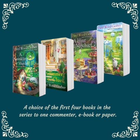 Agatha Award-winning author Daryl Wood Gerber is best known for her nationally bestselling mysteries, including the Fairy Garden Mysteries and Cookbook Nook Mysteries. As Avery Aames, she penned the popular Cheese Shop Mysteries. In addition, Daryl writes suspense including the well received The Son’s Secret, Girl on the Run, andthe popular Aspen Adams suspense novels. Recently Daryl, who loves a challenge, published a Christmas romance, Hope for the Holidays. Fun Tidbit: as an actress, Daryl appeared in “Murder, She Wrote.” She loves to cook, garden, read, and walk her frisky Goldendoodle. Also she has been known to jump out of a perfectly good airplane. You can learn more on her website or find her on social: Facebook, YouTube, Instagram, TikTok or Goodreads, BookBub and Amazon!