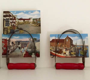 I love old utensils with wooden handles, but only buy them if I can think of a way I would use them. I thought these dough blenders would be great for holding vintage postcards or photos. When I posted a picture of them on Facebook, Edith said they’d also be great for holding recipes.