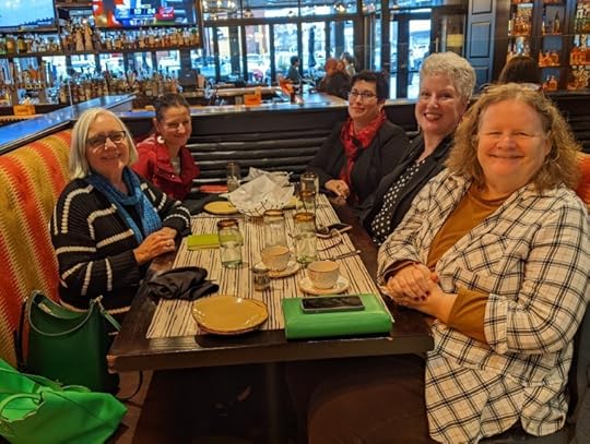 A – Staying healthy after a weekend of hugging and eating and drinking with author pals and fans at the New England Crime Bake. It’s a major victory to celebrate, especially when the weekend was capped off by lunch with four of the Wickeds (and missing Sherry terribly)!