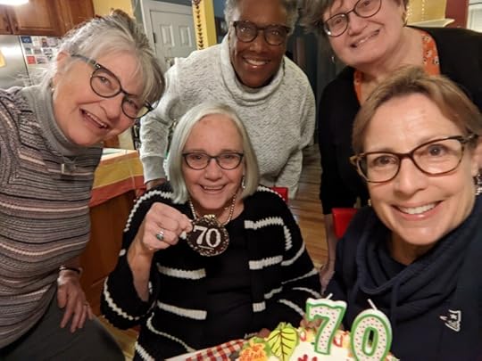 D – And then there are birthdays to celebrate. Yes, it is my birthday month, and last night four dear friends threw me a belated party. We had food, wine, cake, and most important, we celebrated decades of sharing with and supporting each other through joys and sadness and everyday life.