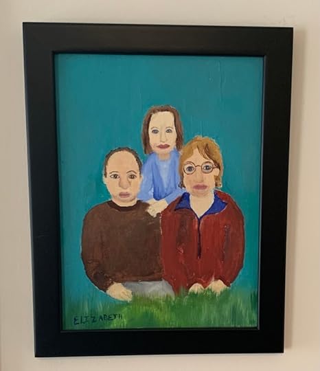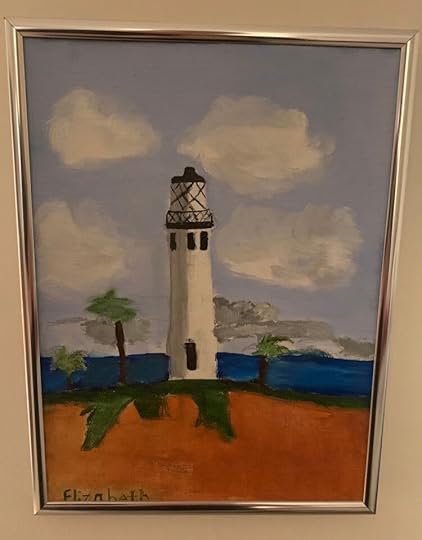 These are a couple of others she did when she took the class. The Point Vincente lighthouse in Palos Verdes, California. She painted it from a picture I’d taken. And then the family portrait. A friend of ours said it captured our essence.