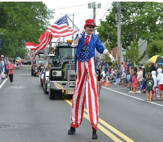 We cheered loudly for the Nauset Sailing Club’s homemade float bearing its traditional Sunfish sailboat with a red, white, and blue striped sail and, as was traditional, the club’s youngest sailor at the helm. We oohed and aahed at the Uncle Sam on stilts and clapped along with the high school marching band playing John Philips Sousa’s “Stars and Stripes Forever.” And we totally lost it for the Shawme Manor float, a long flat-bed truck on which a dozen older ladies and gentlemen were doing an enthusiastic Electric Slide led by none other than Jillian herself. But best of all, in my opinion, was the Harbor Patrol’s Grady-White being towed on a trailer behind the Patrol’s Ford Explorer. The boat was draped with red, white, and blue bunting, and at the helm was the hottest harbormaster on Cape Cod (and maybe the world) waving to his adoring (on my part anyway) fans.