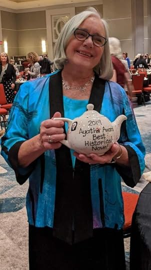 It was sheer joy to see Edith Maxwell receive her long-awaited Agatha teapot for CHARITY’S BURDEN, the 4th book in her Quaker Midwife Series.