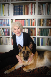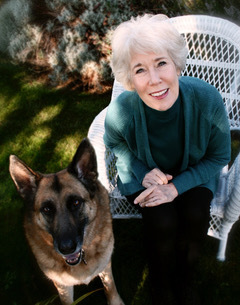 Photo of me with my late German shepherd, Bridget (photo by Jordan Taylor)Dogs also help my characters heal, sometimes physically, but always emotionally. Studies have shown that dogs lower our heart rates and blood pressure. They decrease our cortisol, a stress hormone, and they increase the dopamine and serotonin that calm us. Hospital patients visited by dog report less pain. Reassured by fictional dogs, my characters gain similar feelings of wellbeing—and I believe that when readers enter my fictional world, they also vicariously pick up the comfort and security that the dogs provide.