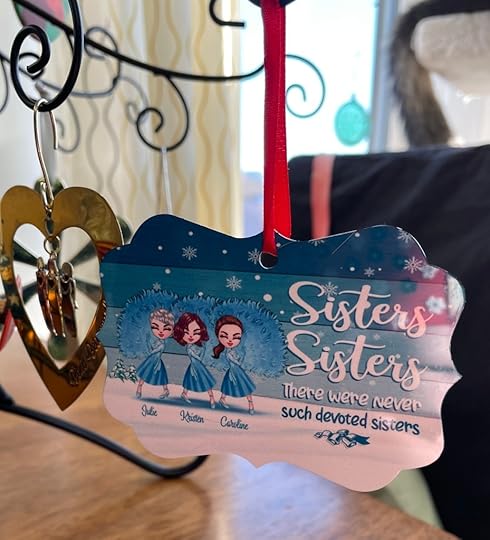 Julie: I really struck gold with my sisters. We’ve been juggling a lot of family stuff this year, but we’ve remained united, supportive, and friends. I bought them this ornament because it made me laugh, we all love White Christmas, and because it’s true. There were never such devoted sisters.