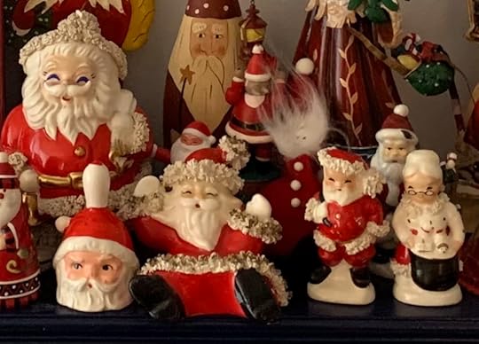 Sherry: I have a lot of Santas but my latest obsession is vintage spaghetti-trim Santas. My mom has a couple that she’s had for years. I bought a Santa and Mrs. Claus salt and pepper shaker set at a church sale a long time ago. I confess that last year I bought two on Etsy and gave one to my daughter and one to my husband and said, “Give this to me for Christmas.” I sent a link to my mom for one for this year so fingers crossed!