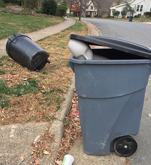 Liz: At first glance, it looked like a sad, discarded mannequin in the trash bin. But when I looked again, it was halfway out of the bin…and looking right at me.