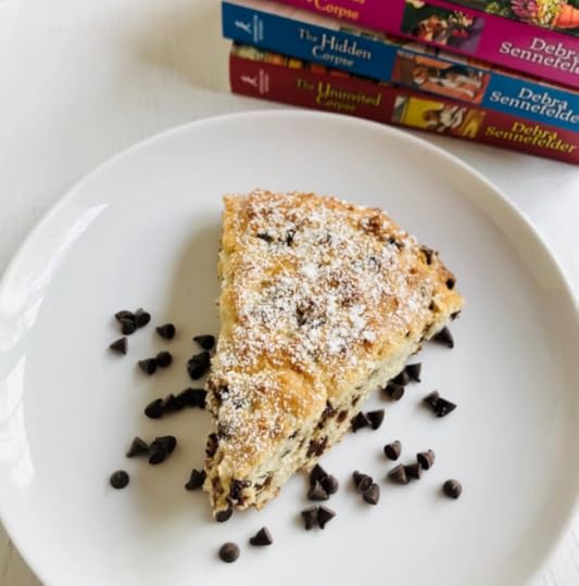 As I wrote this post, I realized that I hadn’t shared any recipes in my previous posts. Why not? I have no good answer, but I have a yummy recipe to share with you today. From THE CORPSE IN THE GAZEBO is Hope’s Chocolate Chip Scone recipe. Slightly sweet and crunchy on the edges, soft and moist in the center. . Like Hope, I love a good scone, and I have a hard time not eating all the scones when they come out of the oven. That’s why I usually share a few with my neighbors.