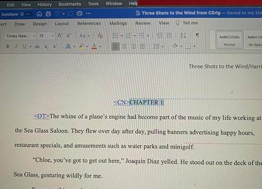 Here is a sneak peek at the first couple of sentences in Three Shots to the Wind: