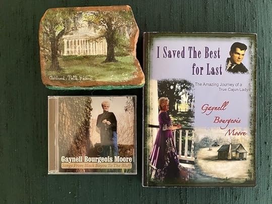 In addition to being a general delight, Gaynell is extraordinary on many levels. A proud Cajun woman, she’s a self-taught artist, musician, and writer who uses these talents to chronicle her life and the Cajun culture she grew up with. I’m the lucky owner of her CDs, memoir, and a brick from Ashland-Belle Helene she decorated with a lovely painting of the grand home. I bought the brick when we first met, and it’s traveled with me from New Orleans to New York to Los Angeles.