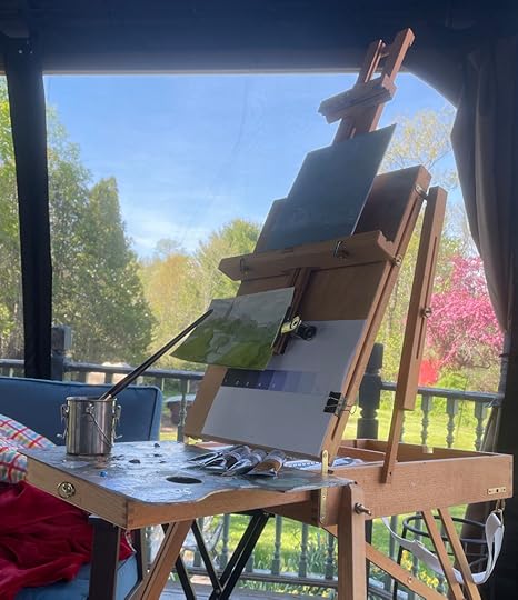 Before I quite knew what had happened I bought a few modest supplies of my own and challenged myself to a project that involved a small watercolor sketch each day for 100 days in a row. It ended just before Mother’s Day 2020. When asked how I wished to be feted by my family I surprised myself by requesting a gift of an easel and oil paints. Like Charles, I ended up painting out-of-doors more often than not. Like Charles, I possess more enthusiasm than skill.
