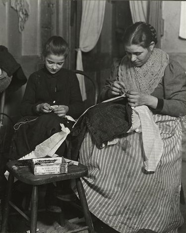 ART: From the NYPL Digital Collections: Sew With Mother: Louis Hine Photo of tenement family; Concert Diva: Jules Cheret Poster