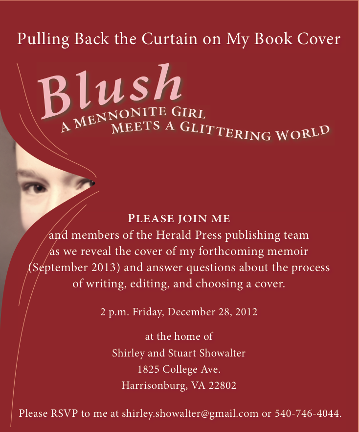 I actually had a copy of the finished cover at Thanksgiving. I’m an exuberant type who likes to share news, and I almost put up the image right away. Instead, I slowed down a minute and asked my FB page “fans” this question: “Would you rather see the cover in an event or shared online?” I fully expected all my fans to clamor for “see it now”! But the first person to reply said “event” and others followed. That not only gave me energy to pursue what an event might look like, it also gave me permission to keep involving my prospective readers.