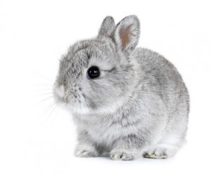 At home I realize there’s a problem. Imagine the bunny pictured left but completely white and more hostile. He isn’t eating and he’s really terrified of my touch. It feels like more than just shyness now, so I make an appointment at a vet that sees rabbits.