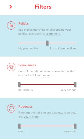 You may also notice that filters don’t always work the way you’d expect. We’re using off-the-shelf open source machine learning filters – we may end up fine-tuning these over time, but we don’t have the advantage of billions of user sessions to learn from the way Facebook does. It’s also a good reminder that these filters are always probabilistic and inexact – you get to see where our system screws up, unlike with Facebook!
