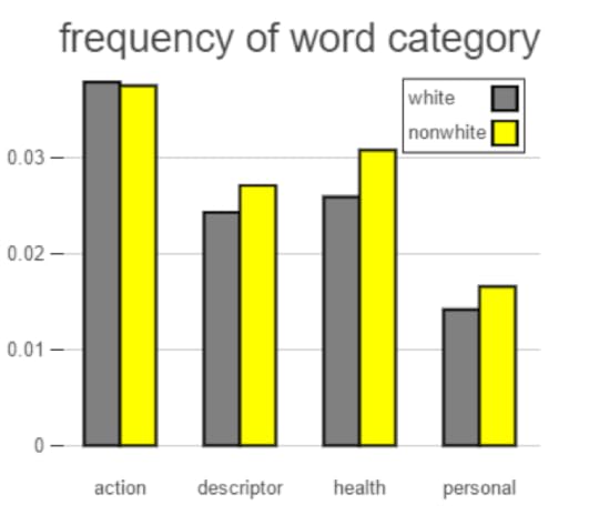 Before concluding that US media is somehow biased against white QBs and their scandals, it’s worth keeping in mind that these terms disproportionately associated with white QBs are highly idiosyncratic – they’re more the portrait of a single player’s struggles than the way a whole group of players are characterized. Moving down in the frequency table to words that appear 1.5x to 5x more with white QBs than black QBs, we find some evidence to support the “white brains, black bodies” hypothesis, but less than we expected.