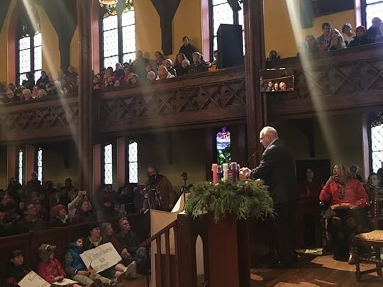 We had a remarkable turnout for the event. The Reverend who hosted us told me the church held 1400, and it was filled to capacity, with people sitting in the aisles, and 300 in an overflow seating room. The population of Berkshire county is only 129,000, so the folks who came out to march and listen to speeches total more than 1% of our total citizenry.