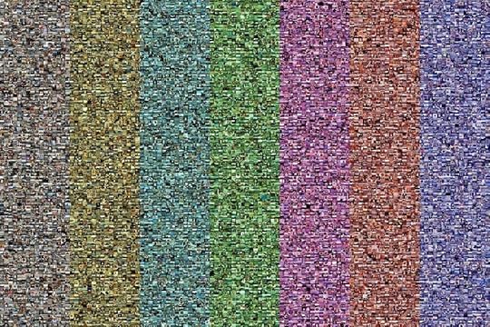 At OSF, Elahi’s images are shown as a multi-colored, wall hung tapestry, one of dozens of ways the images have been shown throughout the years. The piece is titled “Thousand Little Brothers”