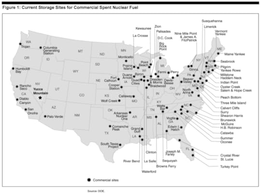 And there’s lots of sites like Yankee Rowe that already exist, and more on the way. The map above, from Jeff McMahon at Forbes, shows sites in the US where nuclear fuel is stored in pools or dry casks. And more plants are shutting down – Yankee Rowe’s sister plant, Vermont Yankee, announced closure this week to speculation that nuclear plants aren’t affordable given the low cost of natural gas. Of course, given the realization that cleaning up Yankee Rowe has cost 16 times what the plant to build and will continue until the waste is in a permanent repository might give natural gas advocates pause – will we have similar discussions of the problems of remediating fracking sites in a few years or a few decades?