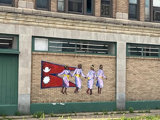Nepali Flag mural on the side of a junk store, Erie, PA