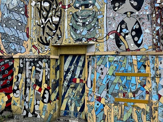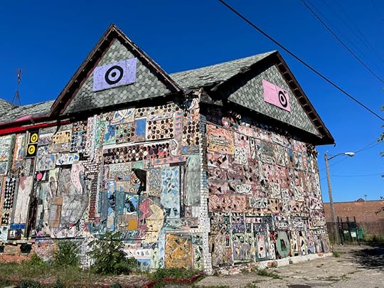 For me, the most encouraging loose tooth transformation in Detroit is Olayami Dabls’s African Bead Museum in Petosky-Otsego. Since 1983, Dabls has been buying beads from traders who’ve come back from African trips, developing a remarkable collection of work from across the continent, with a particularly strong collection of West African beads. Dabls tells me that he began decorating his building and surrounding buildings with murals and fragments of mirrored glass as a way to attract attention to his project. The museum is now a bead shop whose proceeds fund Dabls’s art and the eventual construction of the museum building.
