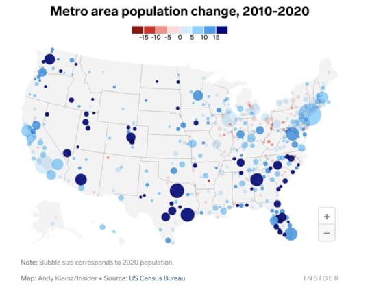 And yet, that’s not what’s happening. The fastest growing American cities are in waterlogged Florida, steamy Texas and rapidly drying Utah, while the cities we visited continue to shrink, or have recently bottomed out. Amy is from Houston, and she’s been looking into selling her condo, which has survived the last several hurricanes, but is across the street from properties that routinely flood. Miami routinely floods, filling streets with salt water and sewage, even on days when it doesn’t rain. (Predicted flooding from storm surges is much worse.) The Great Salt Lake is drying up, leading to toxic dust in Utah’s fast growing cities.
