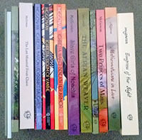 * Sanguinity wrote that last sentence, by the way, in case you were wondering why it was so long. The three books pictured on the left without spine text are How the Feather Sisters Came to Rule the Night, The Maiden Who Turned to Water, and The Girl Who Grew Crutches From Seeds.