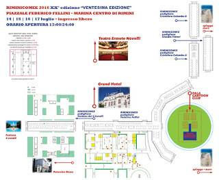 Prossimo appuntamento, tutti al mare.Ventesima edizione. Riminicomix, la mostra-mercato del 2016, in una nuova veste, per dare più spazio a pubblico ed espositori. Un cambiamento verso la definizione della mostra “più grande” dell’estate italiana. Con la sua unicità nell'orario di apertura… dalle 17:00 alle 24:00, l’unica fiera del fumetto ad ingresso gratuito del belpaese. Certamente la prima, ed unica, con la “ics” (X) finale. Questi i luoghi divenuti ormai storici: Rimini Marina Centro alle spalle della Fontana dei Quattro Cavalli, in Piazza Federico Fellini. Davanti al Grand Hotel, di Felliniana memoria, vengono allestite le tensostrutture che avranno nuovi e sconvolgenti sviluppi. Seguiteci come sempre.Vi aspetto con Le cronache dei cinque regni per vivere fantastiche avventure :)