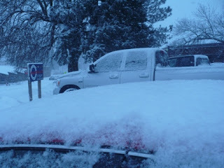 This is out the back door. My cherry tree left, the garage right, the tracks from My Cowboy wading down to the shed to get his tractor fired up.White Christmas!Mary Connealy http://www.maryconnealy.com