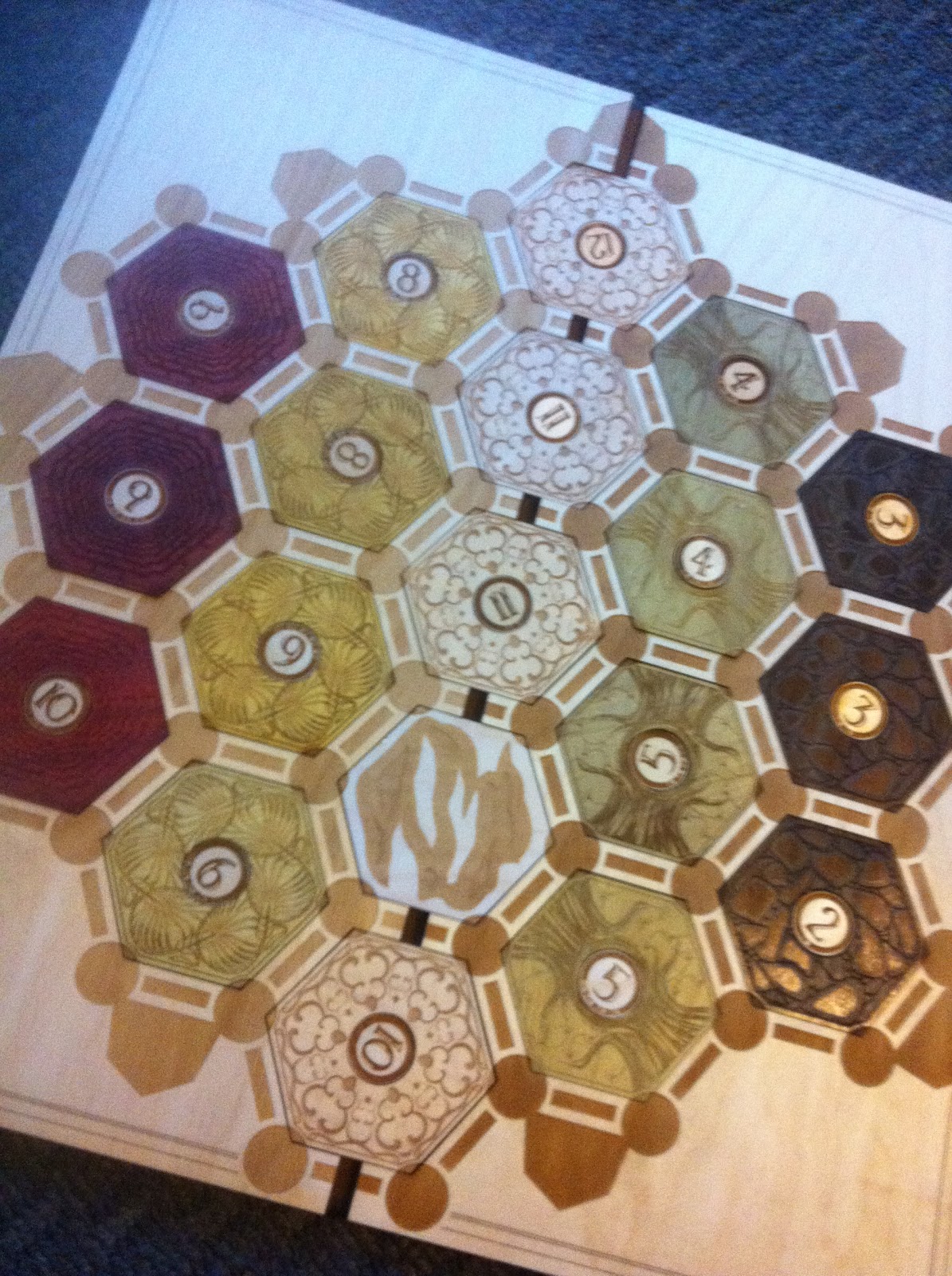 Moving on, this one will be quick, but my laser cut Catan board you guys probably all saw on the internet months ago and didn’t move on—well, that came in and here it is! The quality is mind-blowing and a true showcase of the quality of Kickstarter to get stuff done. Big ups to the guys at Boardcrafting and should you want to research further, please check out their KS site here: http://www.kickstarter.com/projects/sjbrown/boardcrafting