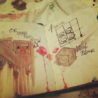 But that gave me a really cool idea. What if I made him a journal that looked like an old adventurer’s journal as if he really lived in the world of Minecraft? It would come complete with thoughts, stories, tips, ink stains, burned pages from Creeper attacks… I gave it to him on Christmas Eve. Here’s some samples: