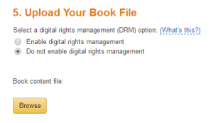 It is important to note here that this particular choice cannot be undone. Short of unpublishing and republishing this cannot be changed. Once you have some nice reviews and lots of sales on any particular book unpublishing it is not a great idea, so give some thought to this before setting it in stone. So, what is DRM?