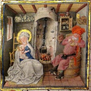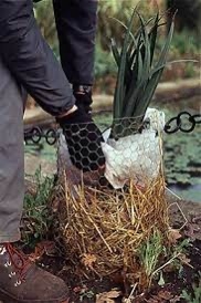 It’s a method used extensively throughout the medieval period and is still used today. Now a cage of chicken wire restrains the straw over which sacking covers all. In the more distant past, open woven structures of willow or hazel might form a cone slipped over a frost-tender plant and this filled with straw. Vases or planters, too large to be moved from the open garden, could be wrapped in sacking to prevent frost shattering the fragile clay and to protect the contents. Smaller pots were often placed against a wall to gain the double benefit of shelter from icy winds and the release of stored warmth from the sun. If snow threatened, staves – bound together to make a crude trellis – could be propped at an angle like a lean-to and covered with sacking or sheaves of rushes as a make-shift roof.