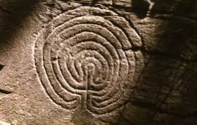 It is only one of at least three others known by that name. And in the names given to these miz lies a clue. Walls of Troy, Troy, Troytown, as well as Julian’s Bower possibly refer to Classical tales of Daedaleus, Troy, and the Minotaur all of which were known and referenced in the later Medieval period.The pattern itself is found repeatedly in sculpture, art, in church floors and incised on wooden doors. Examples can be found in obscure places. The stone-cut labyrinth tucked away in Rocky Valley, Cornwall has long been a feature of local tales, although it has been suggested it is not as ancient as it seems.