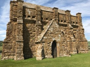 Like so many others, the abbey fell victim to Henry VIII’s program of dissolution. However, the chapel had played an important part in village life for centuries, and local traditions developed around it. Perhaps the most notable was the trek up the hill to the chapel by women seeking a husband – my mother-in-law included. Balancing on one leg, the girl put a knee in one of the three holes in the south doorway, a hand in each of the others, whereupon she would pray: