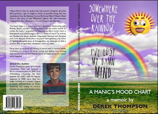 I mean look at that cover; I sent over a page description of my book and they “creatively” came up with that. For shit’s sakes look at the sun’s eyes (never mind I’ve never seen the sun without sunglasses, I mean it is the sun) I have no idea how that represents bipolar disorder. Now just like with art I know people can have different perspectives with mental health and I can respect that. However I’ll be honest I really don’t like the way most people are looking at bipolar disorder and I’m planning on changing that (yeah, that shouldn’t take any time at all).