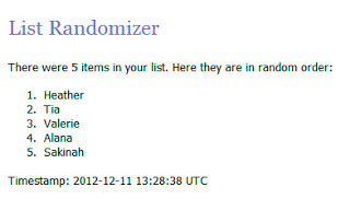 Happy Tuesday, good people of the blogosphere! I had five great entries for yesterday's giveaway and I'd like to announce that winner before we do anything else! Congratulations to Heather! You've won an e-copy of The Abigale Chronicles 3 in 1 combo pack! I'll be in touch today! The screenshot from random.org: