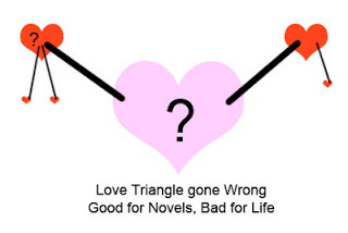We're all familiar with the classic love triangle: one man two women or one woman and two men. The main character is torn between the two and it heightens the suspense in the book. This triangle has been well used in the Twilight series and most of us are familiar with that one. It's basically Bella loves Edward, Edward loves Bella, Jacob loves Bella, Bella thinks she might love Jacob for a minute but not the same way... You get the idea. This is a great relationship plot with a ton of tension opportunity (especially since Jacob's entire reason for being a wolf is so he can kill Edward and those like him).