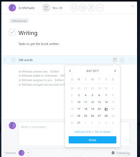 This will allow you to put in your word count goals. Be sure you set due dates and assign the tasks to yourself to get email reminders.