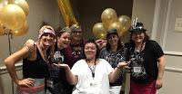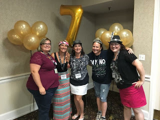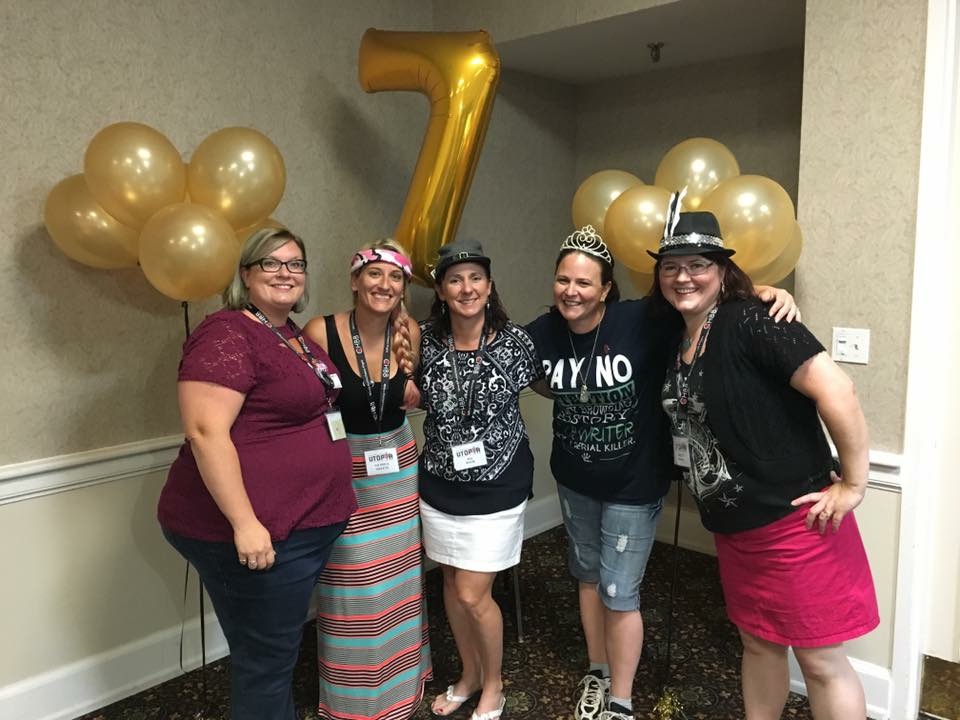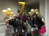Bottom photo, from left (the Ferocious 5): Casey L. Bond, N. L. Greene, Tia Silverthorne Bach, me, and Kelly Risser. Yes, that's a giant 7 balloon. Don't judge us! *grin*