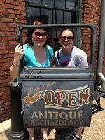 After everyone was ready, we headed over to the place where Antique Archeology was (long line to get in), and did some shopping. I was with Tia, her daughter, Kelly, and M. H. Soars. It was so fun! If you're a fan of American Pickers, you'll appreciate the upcoming photo. We also found a really cool soda jerk. Kelly and I partook, and it was delicious!
