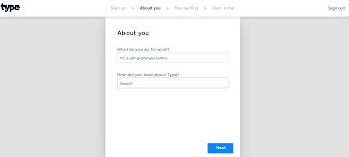 So, let's dive on in and get to creating. Grab a cuppa and a blanket to weather this freaky cold snap, and start your scroll journey. I got to the signup page to assure we were where we wanted to be, so here's the info I've given. Very simple to just click sign up and choose a password. Now come the questions. :)